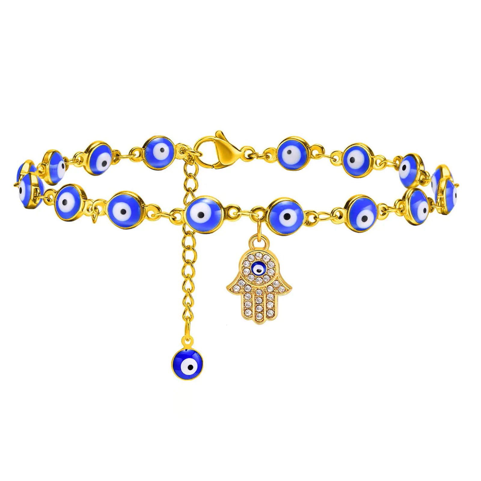 š Evil Eye Fatiha Hand Zirconia Women's 18K Gold Anklet - Dive into summer with sophistication! Our 18K gold-plated copper anklet is not just any piece of jewelry; it's a gorgeous expression of style and confidence, perfect for beach parties or a laid-back pool day.