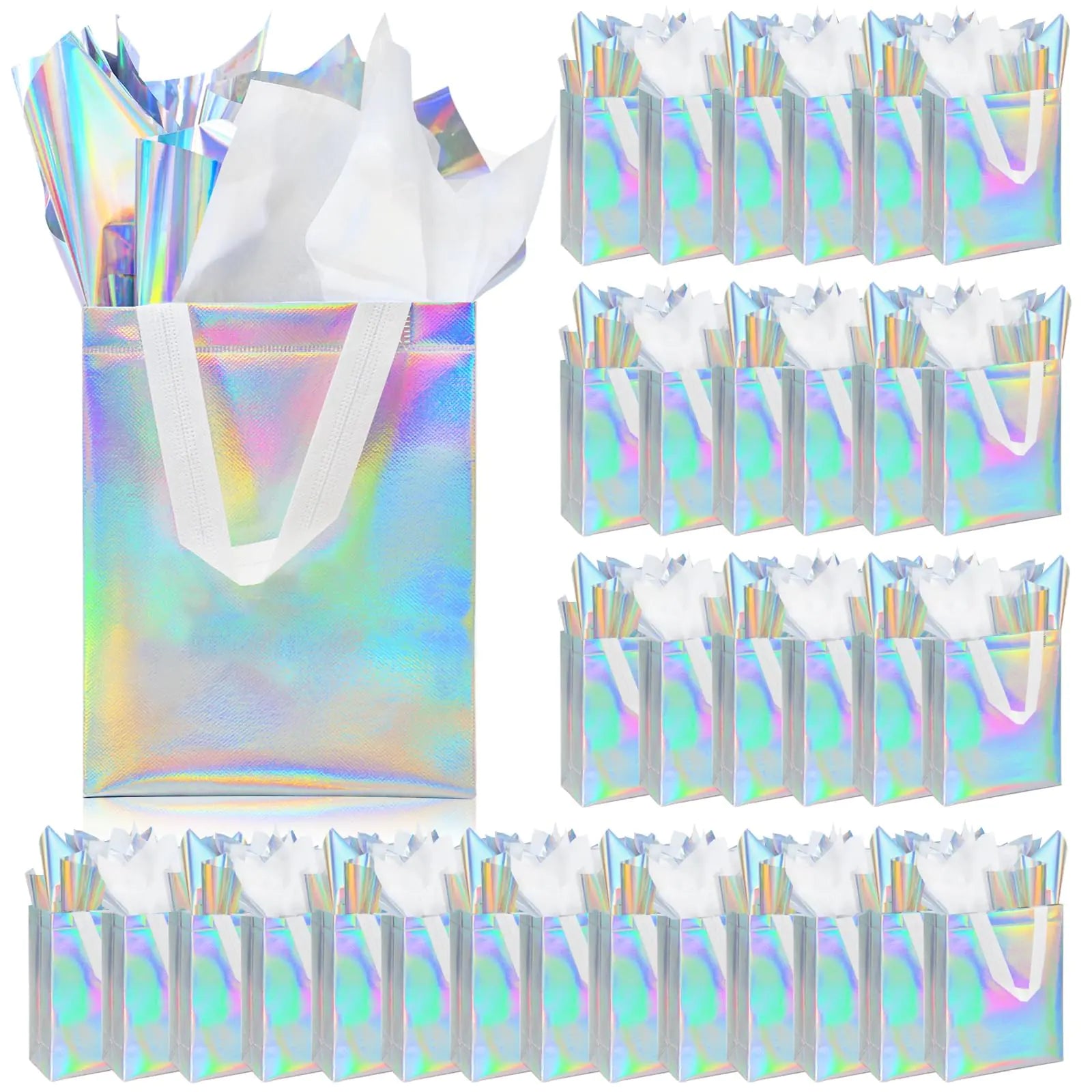 Discover the charm and versatility of our ZIFTY 32 Pcs Gift Bags! Featuring a stunning holographic design that sparkles in the sunlight, these medium-sized bags (10 x 8 x 4 inches) are perfect for any occasion.