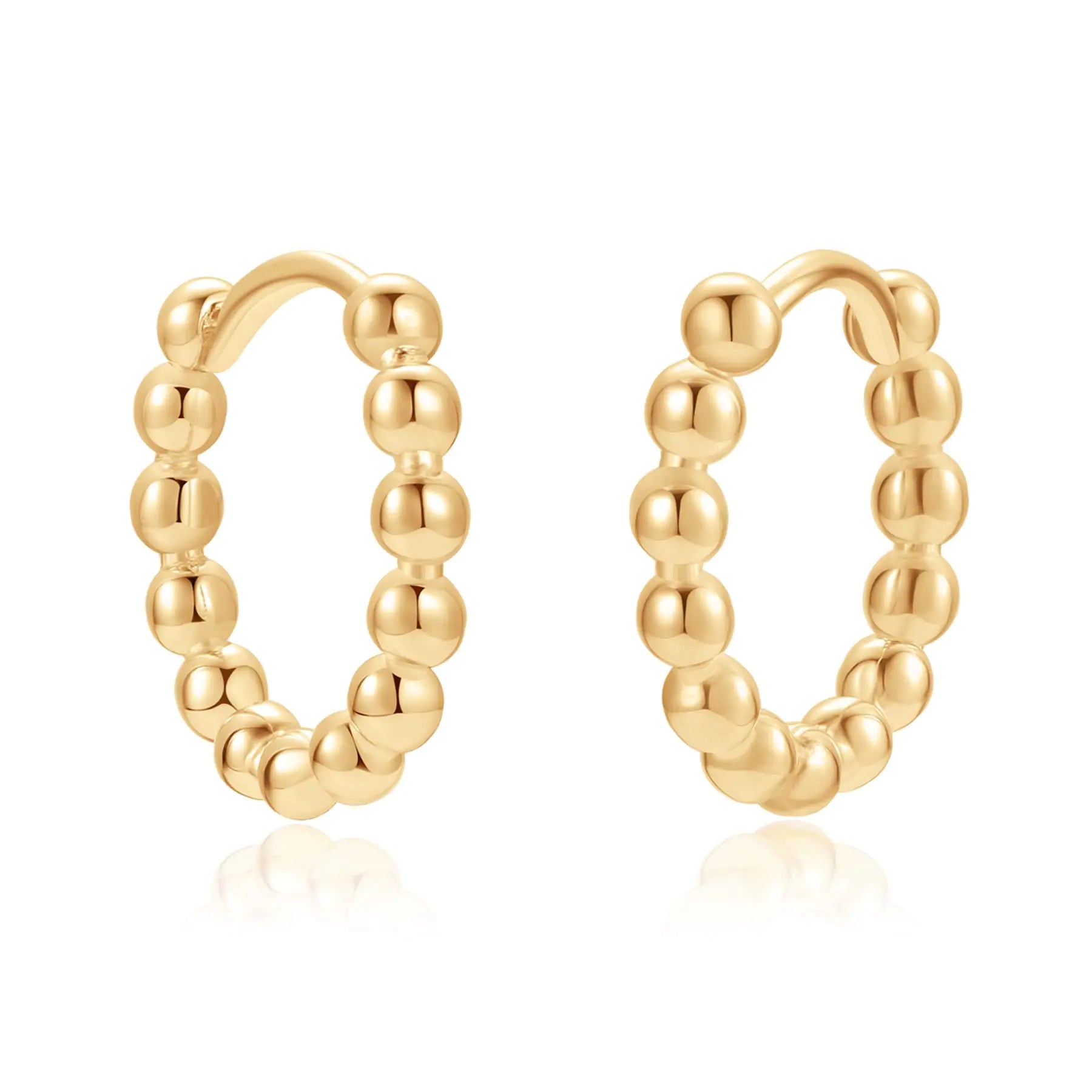 EVERU Gold Huggie Hoop Earrings - Dazzle with these lightweight, 14k gold-filled huggie earrings. Crafted for comfort, their beaded design and easy snap openings make for effortless chic.