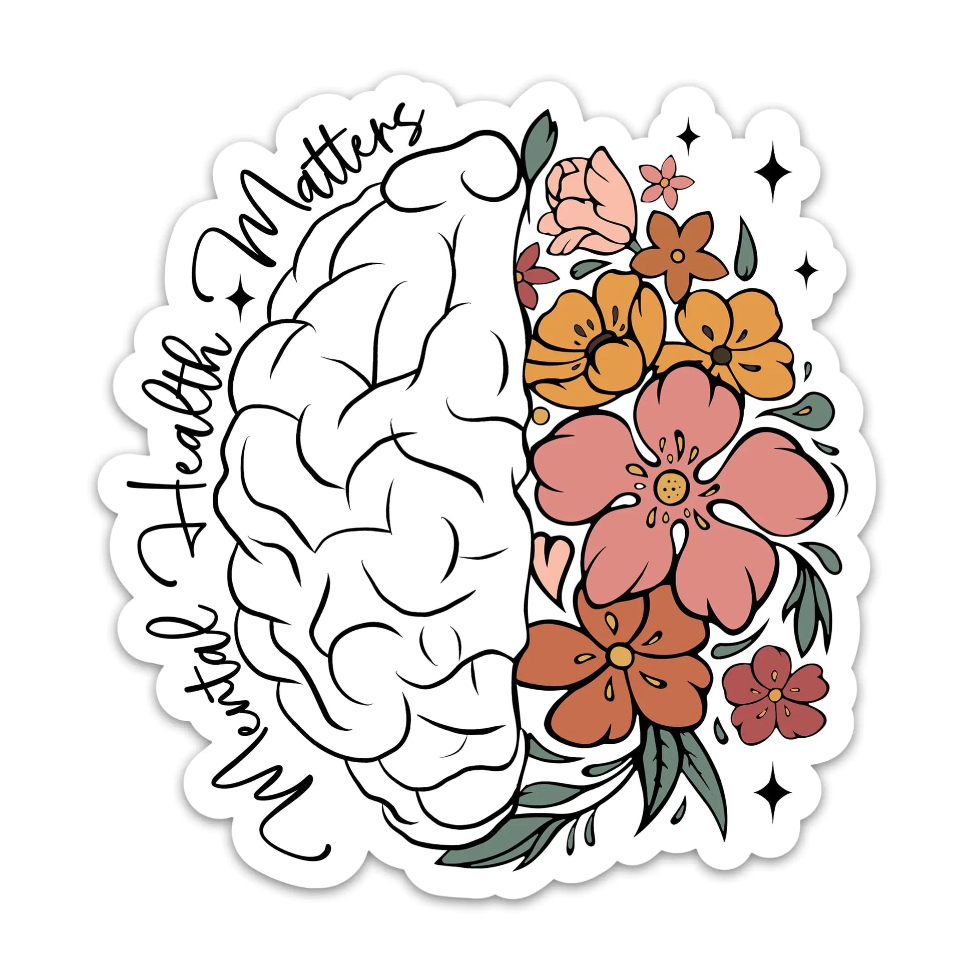 (3PCs) Mental Health Matters Sticker - Colorful Floral Brain Positive Decals
