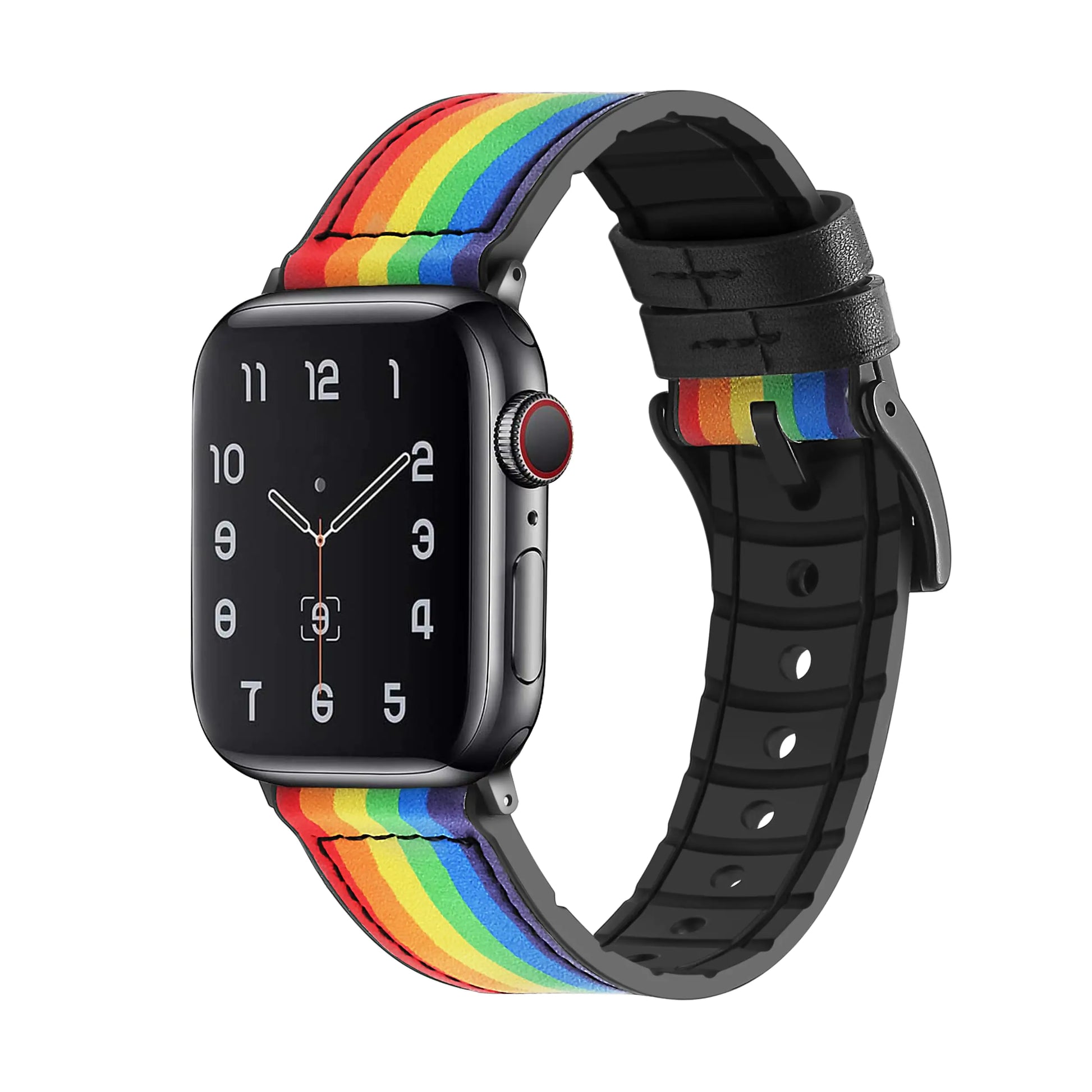 Rainbow Hybrid Strap for Apple Watch: Elevate your style with this luxurious and fashionable genuine leather band. It's perfectly compatible with all Apple Watch models (Series 1 through SE2) including 49mm, 45mm, 44mm, 42mm, and more. Experience comfort and elegance right on your wrist.